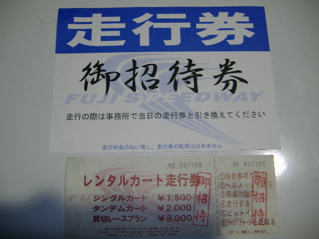 走行券とレンタルKART乗車券